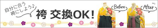 卒業袴のコーデセットの袴をお好みのカラー・サイズに変更できます。