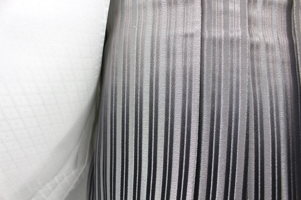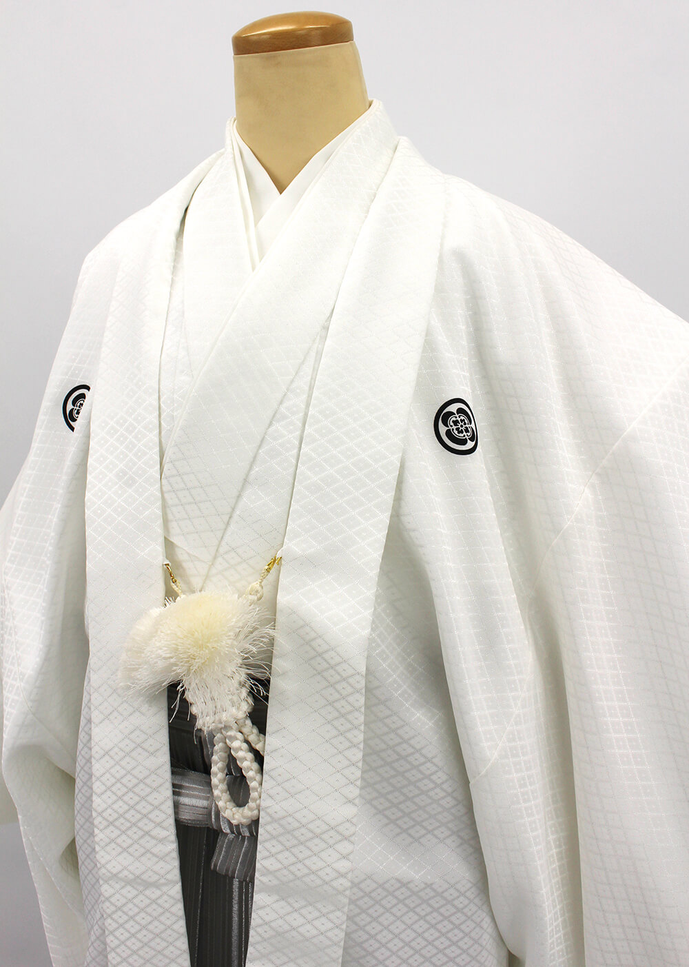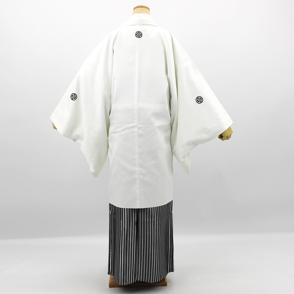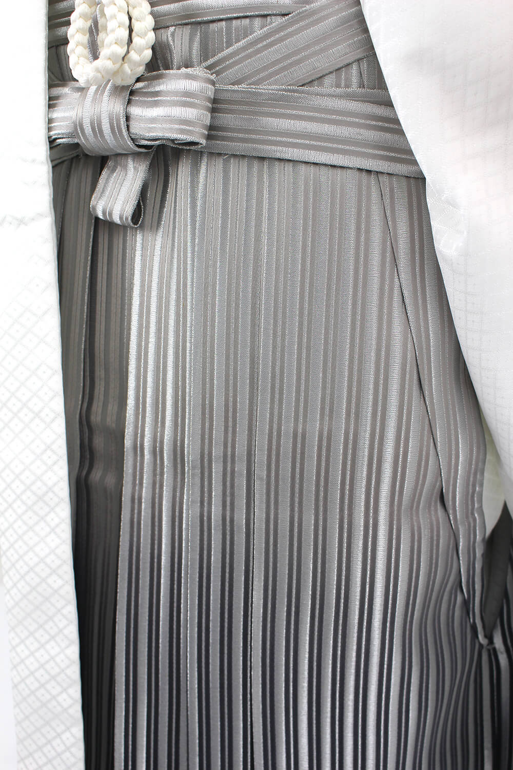 菱の地模様がある白の羽織に、銀×黒のグラデーションの袴がクールなセット。