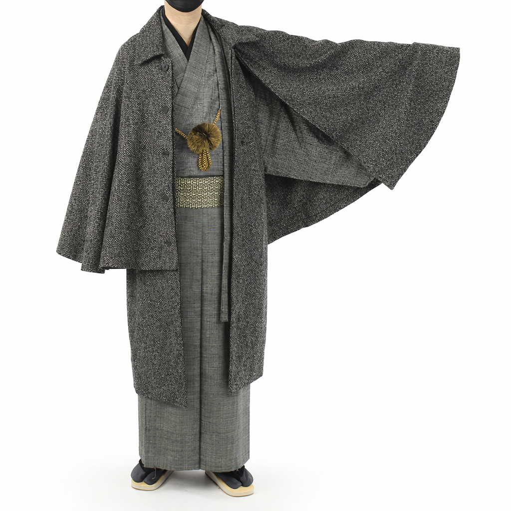 フォーマルから普段着まで使える男性のレンタル用和装防寒コートです。