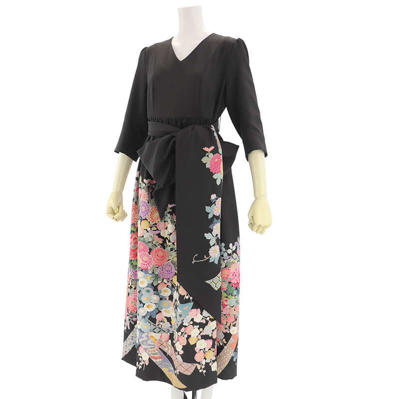 7200-00001 【レンタル】 着物リメイクドレス 黒留袖 留袖ドレス 結婚式 披露宴 フォーマル 新郎新婦の母