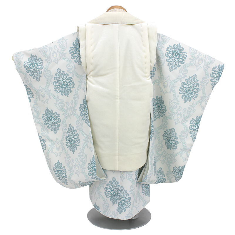 7333-00010 【レンタル】 七五三 三歳女児 被布セット 白×水色ダマスク柄