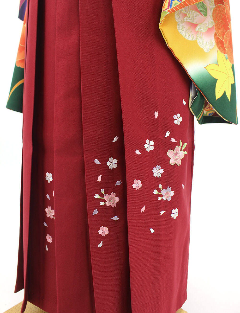 卒業式や謝恩会等の式典にぴったりの刺繍入り袴単品(ワインレッド色)です。